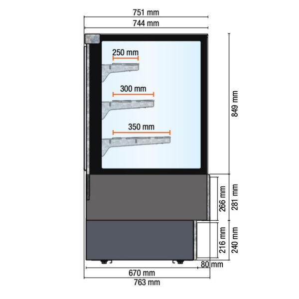 Le porte scorrevoli in vetrocamera, presenti nella parte posteriore, garantiscono la massima operabilità, il minimo ingombro e riducono lo spostamento d’aria all’apertura della porta. Classe climatica 3 (Temperatura ambiente +25 °C; Umidità relativa 60%)