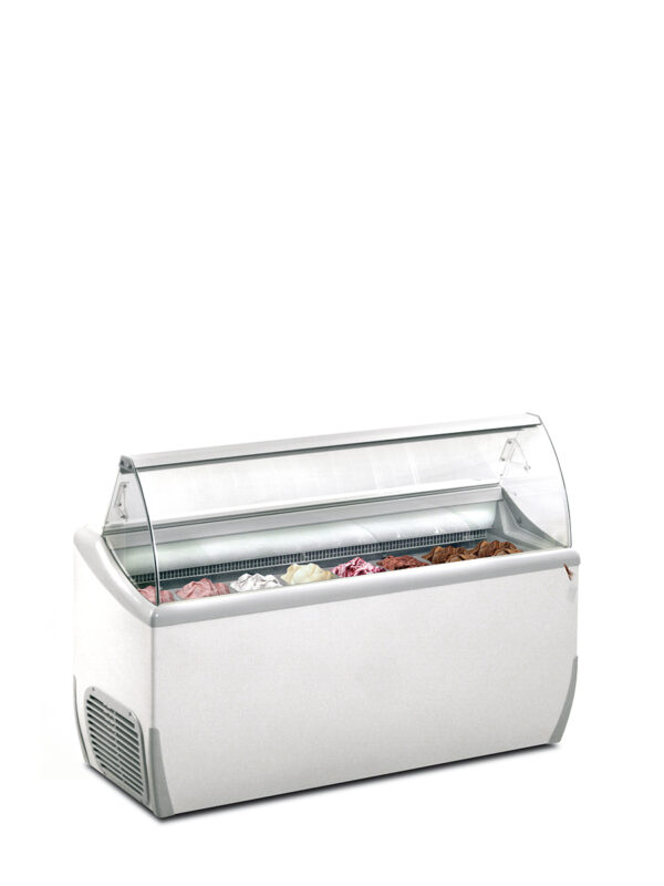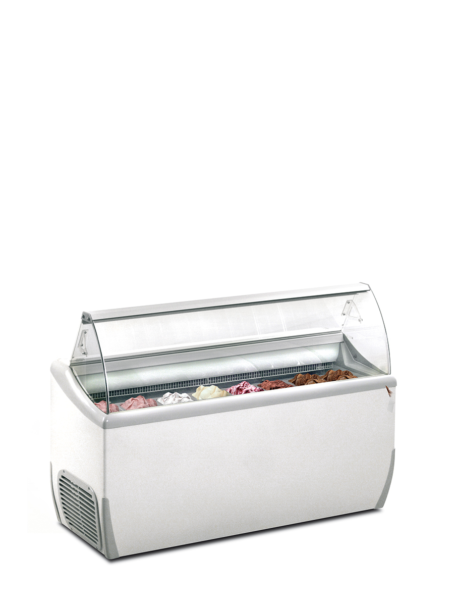 La Vetrina gelato , contiene 9 vaschette da 5 lt (36×16,5xH12 cm) oppure 18 vaschette da 2,5 lt (16,5x18xH12 cm).