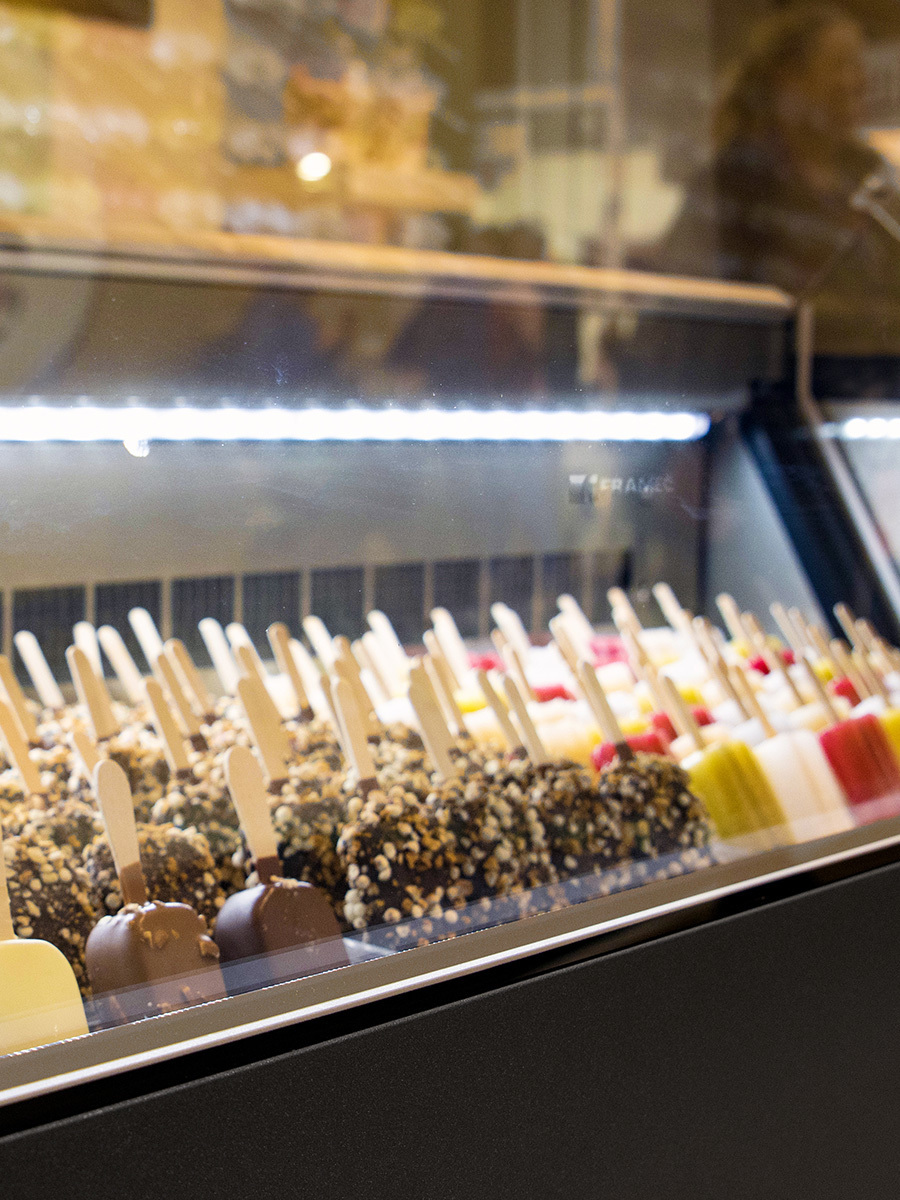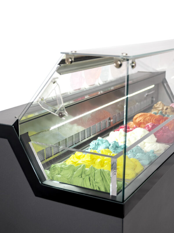 Vetrina per gelato mantecato, su stecco e pasticceria gelata