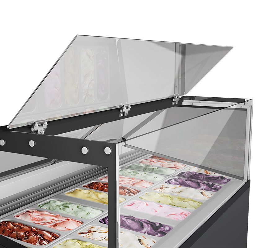 Vetrina ventilata per gelato mantecato, su stecco e pasticceria
