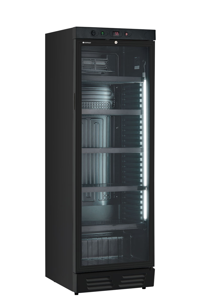VETRINA VERTICALE FRIGO BIBITE POSITIVA STATICA – EKG 390 VG BLACK – COLORE NERO – TN 390 LITRI – Temp. 0°C/+10°C – Dim. cm L59,5xP65,5xh183