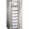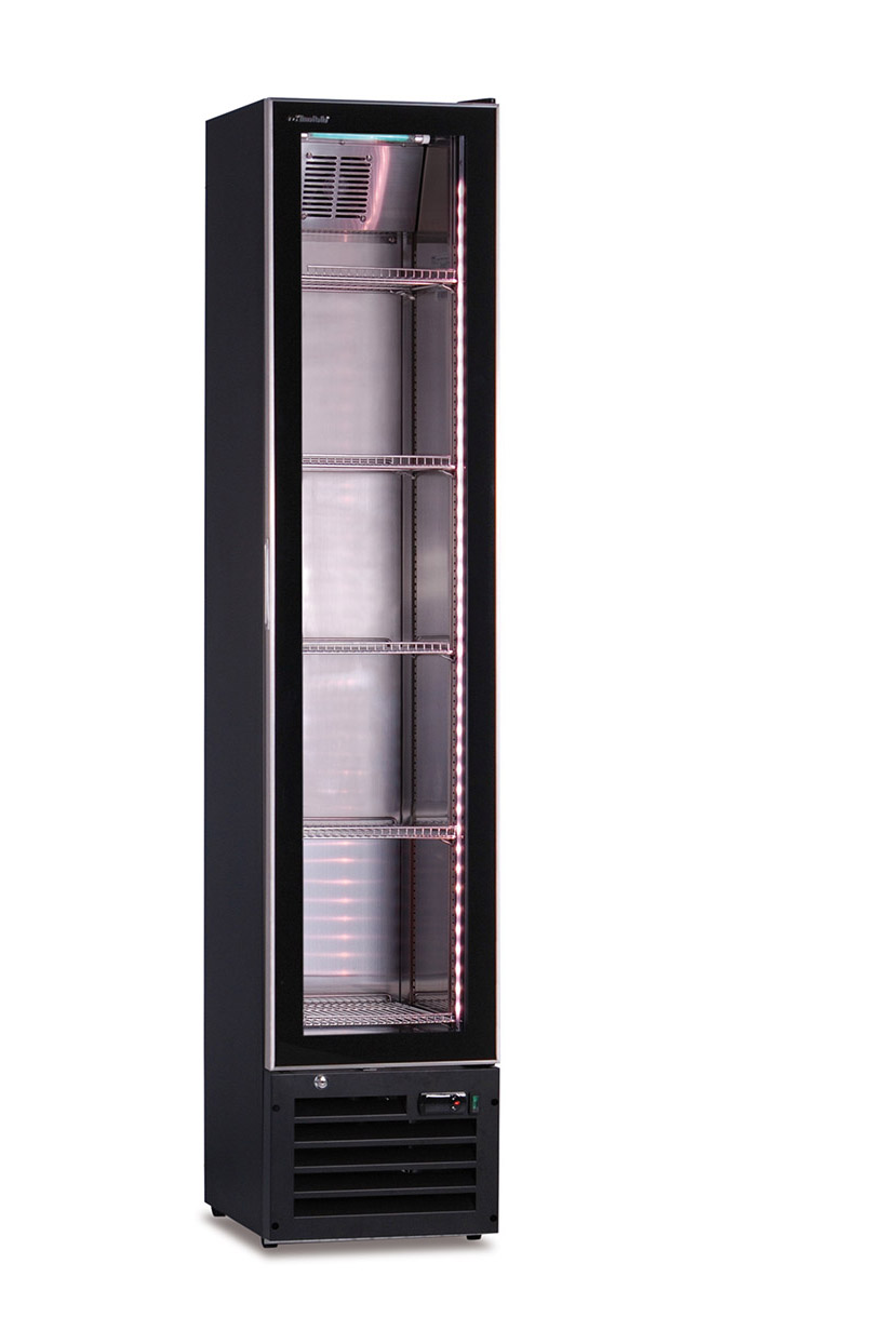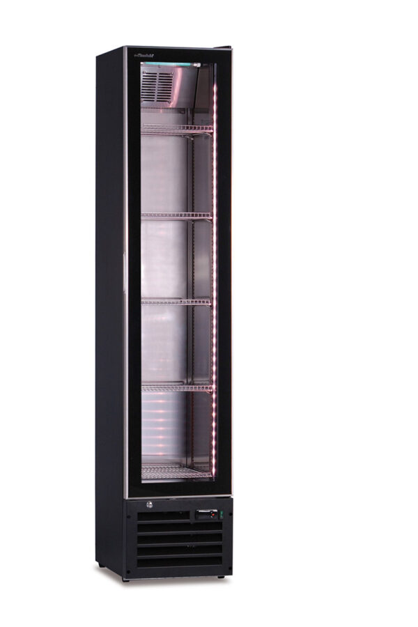 il Frigo vetrina conservatore espositore carne con 1 porta THIN AGER ad un’anta con doppio vetro temperato, garantisce una perfetta visibilità della carne esposta. Il frigo vetrina ha una struttura esterna in acciaio galvanizzato nero e una superficie interna in acciaio inox, che garantisce igiene e resistenza. La refrigerazione è ventilata e la temperatura viene mantenuta tra 0°C e +4°C, ideale per mantenere in perfetto stato la carne. Lo sbrinamento è automatico a fermo compressore. La luce interna a led illumina la carne in modo uniforme e accattivante. La chiusura della porta è con chiave e automatica. Questo modello di frigo vetrina conservatore ha una capacità di 160 litri e dispone di 5, per adattarsi alle diverse dimensioni dei pezzi. Il frigo vetrina Thing ager ha 4 piedini regolabili, per facilitare il livellamento con dimensioni esterne sono di 39 x 47 x (h) 188 cm, mentre il peso netto è di 50 kg e la classe climatica è 4.