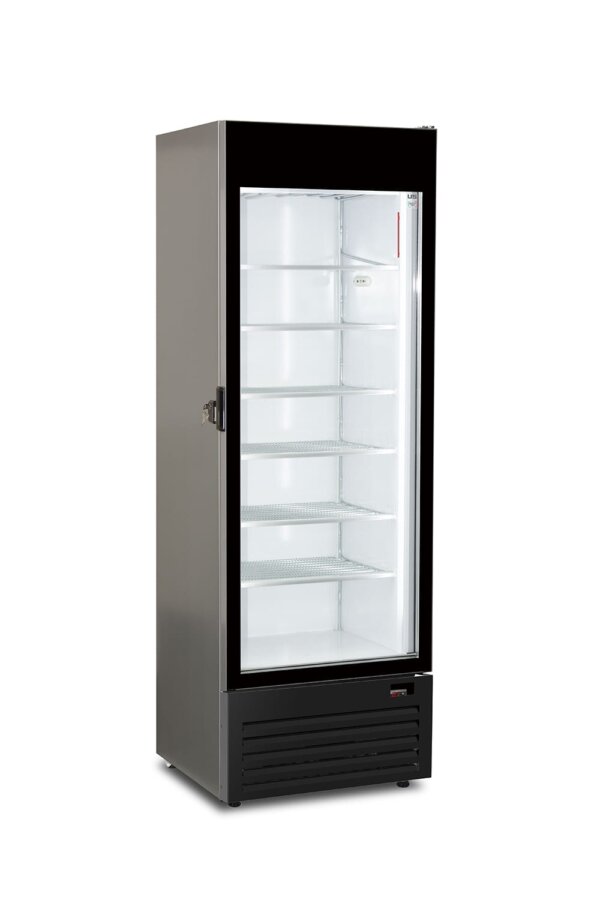 Vetrina verticale statica big size per gelati con porta full glass. FROST 400 NS utilizza gas ritenuti non dannosi per l’ambiente. Made in ITALY